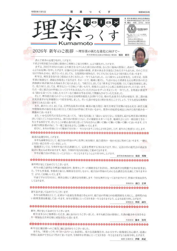 理楽っくすKumamoto特別WEB版(2026新年のご挨拶) 2026 1/06 お知らせ 組合員の方へ 2026年1月6日 明けましておめでとうございます。本年もどうぞよろしくお願いいたします。 組合広報誌「理楽っくすKumamoto」特別WEB版↓ お知らせ 組合員の方へ URLをコピーしました!